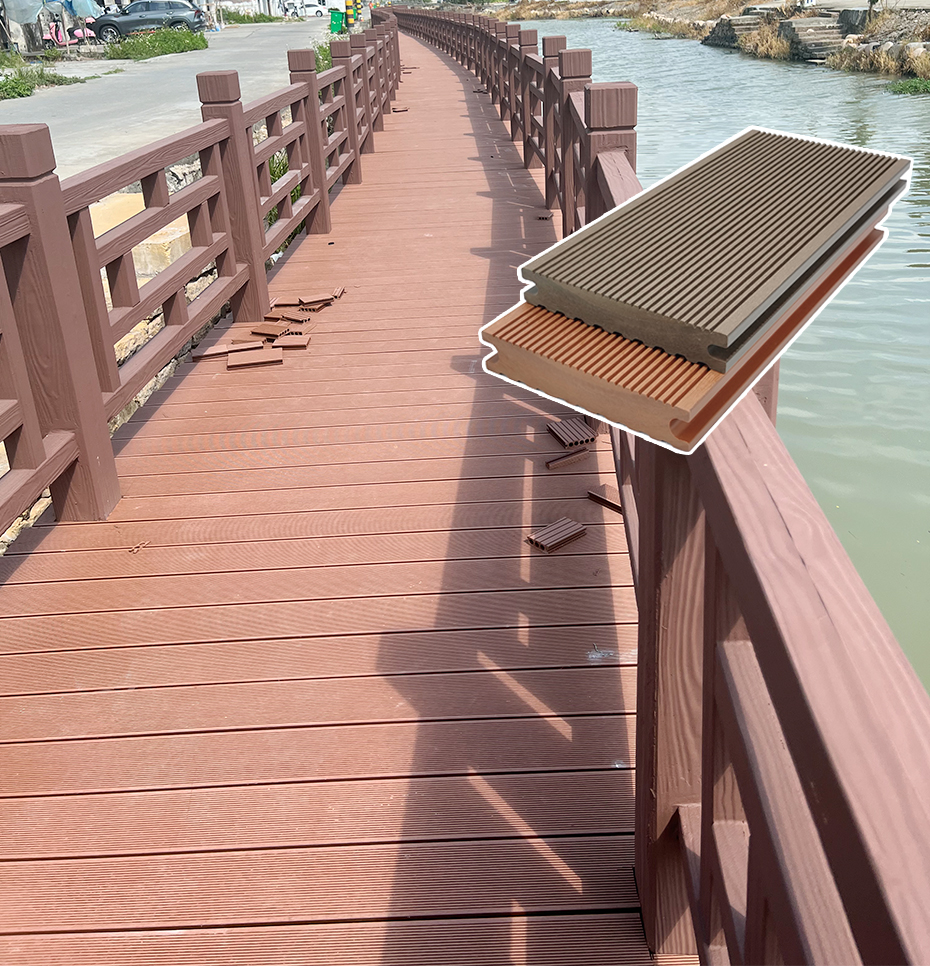 1st generation WPC Composite decking does not contain harmful chemical components such as formaldehyde, it is safe and comfortable and has excellent functions such as waterproof, anti-corrosion, anti-mold, anti-cracking, anti-moth, heat and sound insulation, stability, and maintenance-free.